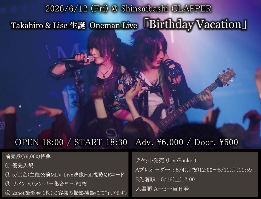 2026/5/1(金)@心斎橋CLAPPER (主催Live)